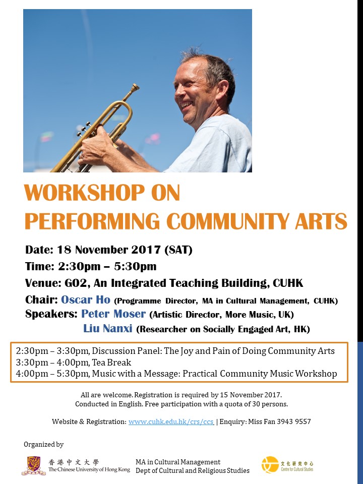 Jointly organized by the MA Programme on Cultural Management and the Centre for Cultural Studies, Department of Cultural and Religious Studies, CUHK