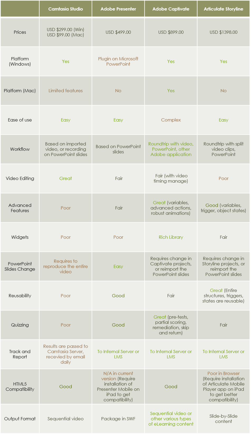 - Less features and advanced options comparing to Adobe Captivate, such as no widgets, advanced actions, simpler tracking and reporting functions