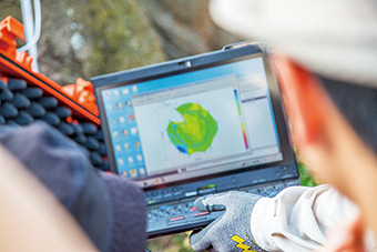 地政總署人員用聲納探測儀檢視樹木情況。(孫綺羚攝)