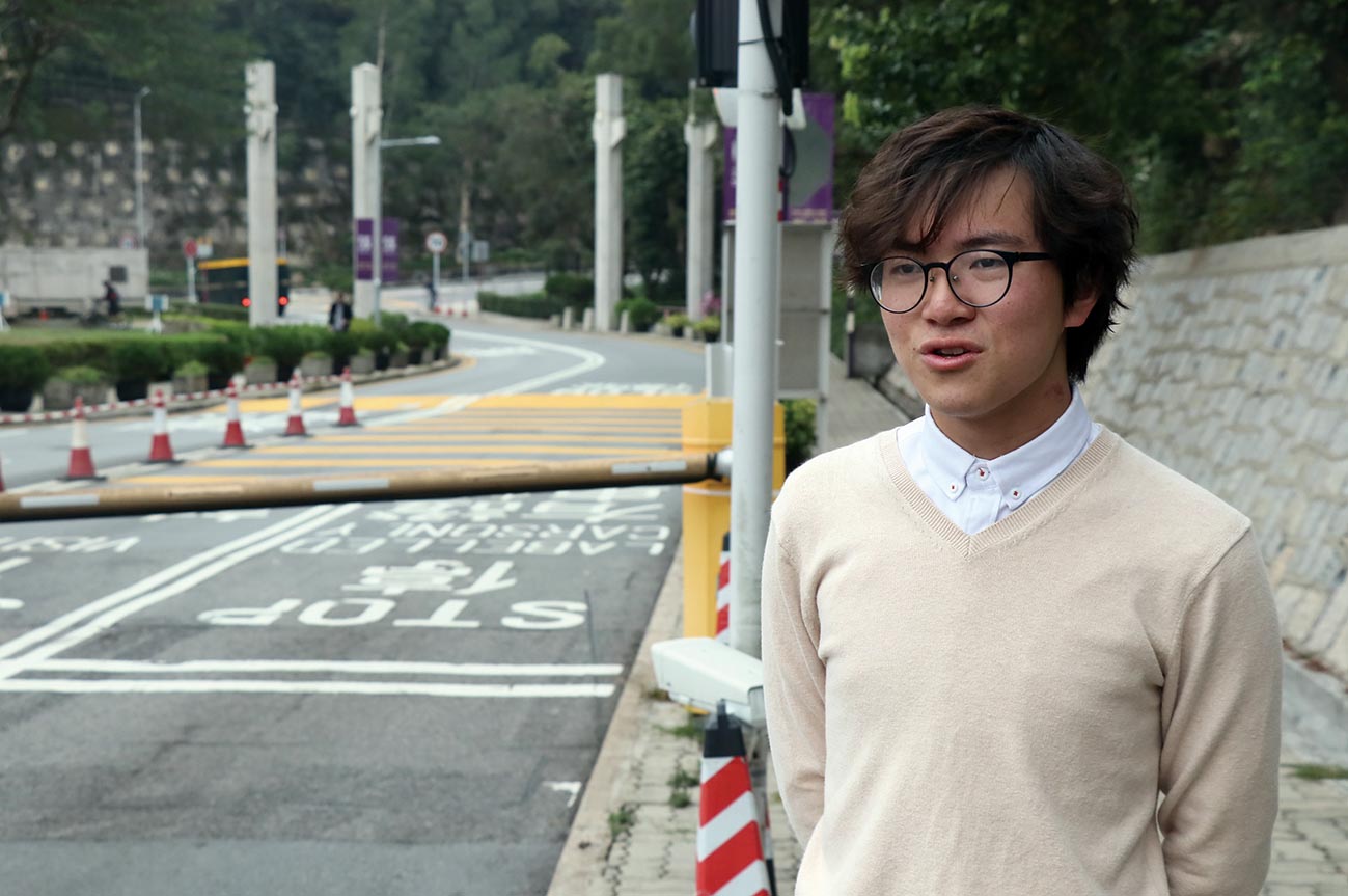 中大學生會會長蘇浚鋒稱,學生會成員曾在校園入口,點算進校旅遊巴數目。(吳穎攝)