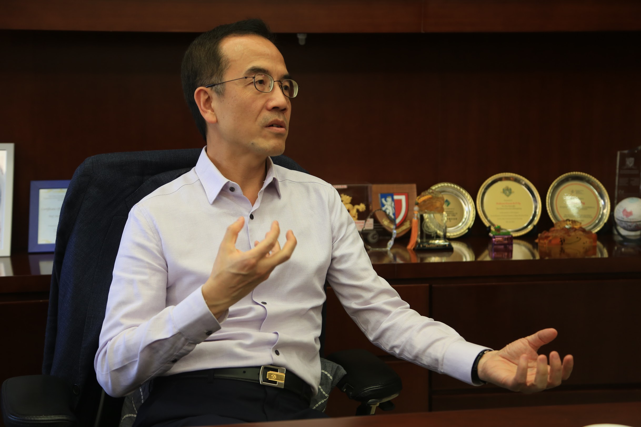 Dennis堅持與學生坦誠溝通,「很多時候 你多說幾遍,很神奇的,學生亦會慢慢去 理解你的難處。」(陳展熙攝)