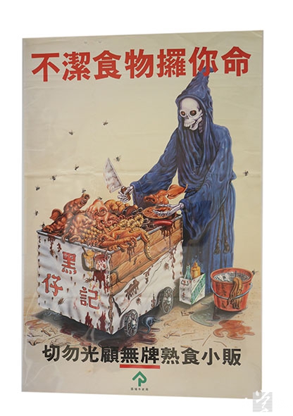 80年代區域市政局海報。可見港府一直關注熟食小販的衛生問題。(香港歷史檔案館提供)