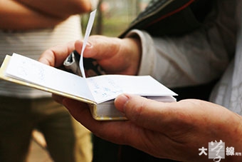 三年以來,李伯記下上百名女生的詳細資料,寫滿一本又一本筆記簿,兒子也約見過十多名女生,但都無法開花結果。(韋珍明攝)
