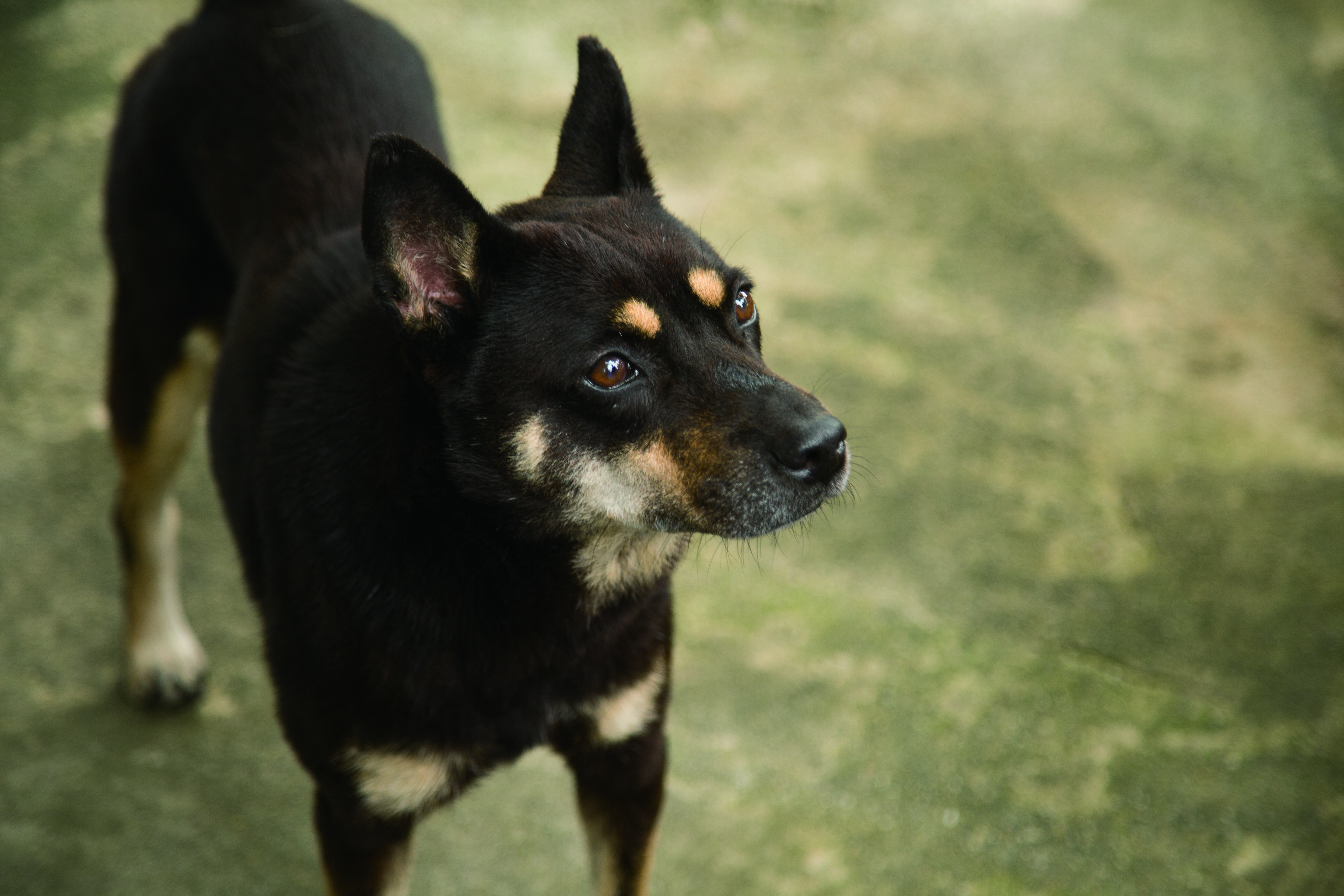 「四眼妹」取名自額頭上的兩黃班點,周英指好像戴了副眼鏡。牠好奇心很重,記者拍照時,不斷撲向鏡頭。(陳穎思攝)