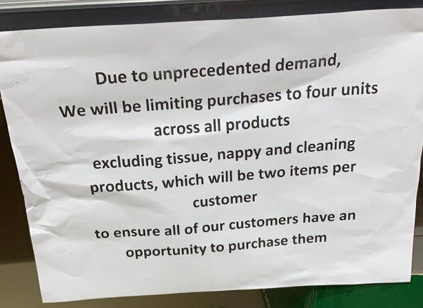 超市開始實施商品限購。(居英港人黃小姐提供相片)