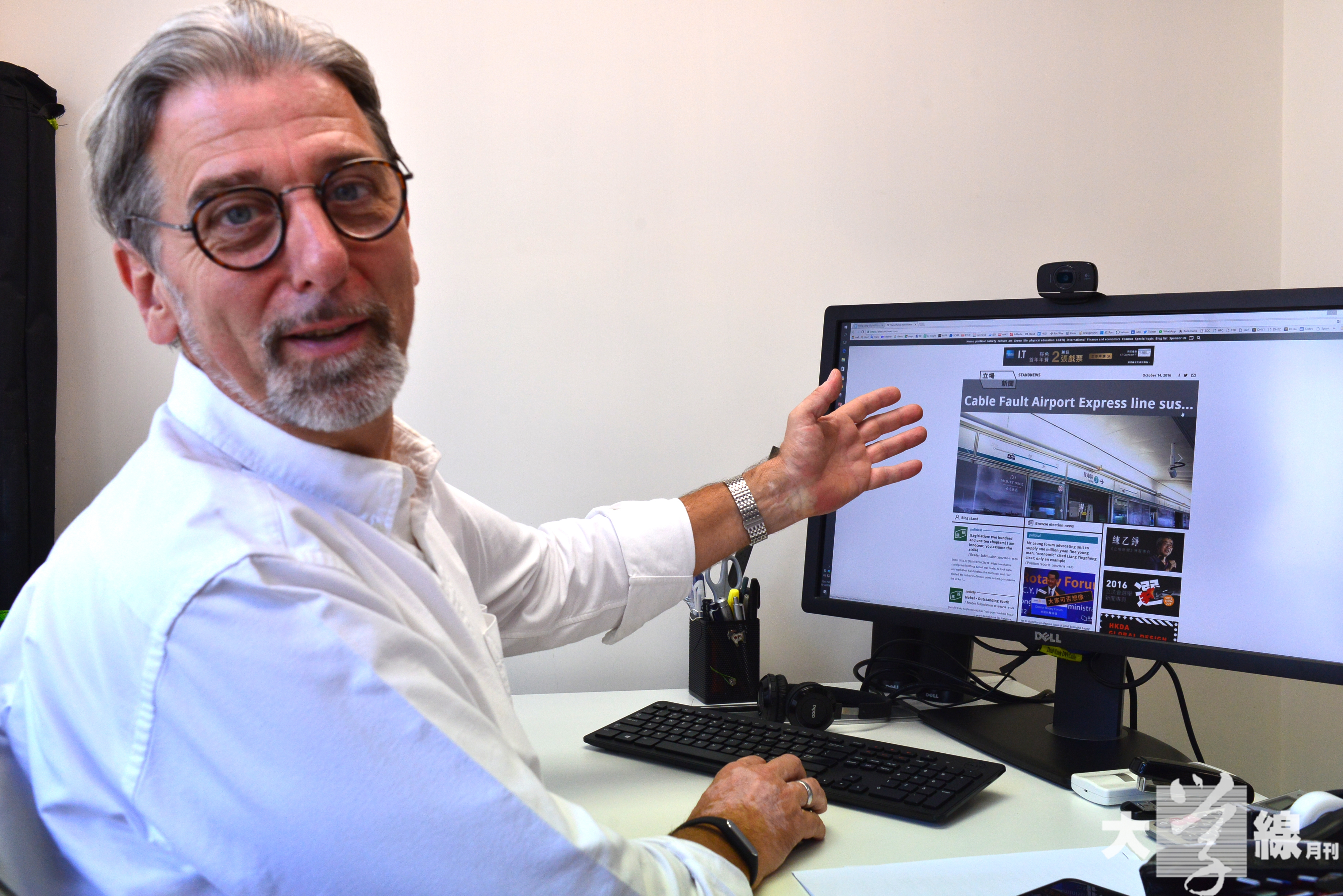 司馬文現時全賴Google翻譯器來翻譯中文報道,以獲取即時資訊。(石偉豪攝)