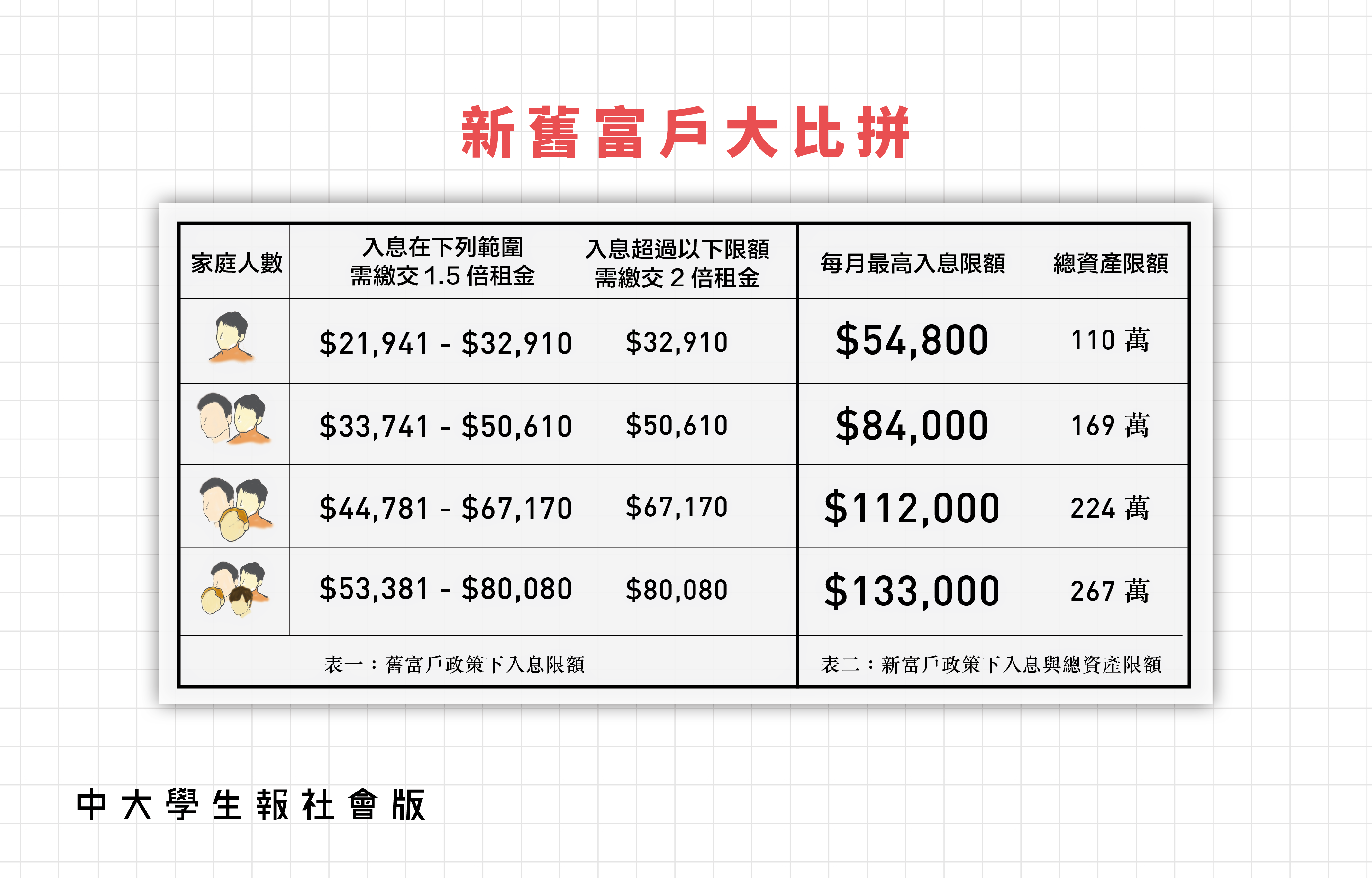 無殼蝸牛與代罪羔羊──評新公屋富戶政策 社會, 17年2月號, 46屆莊「縫」(16-17) 文:K 公屋富戶有多「富」?抑或不過是政府用來掩飾自己罪名的修辭? 兩個月前,房委會通過收緊公屋富戶政策,10月起實施。舊政策下,住戶入息超額就要加租(見表一);總資產同時超出上限就要遷出。今後只要其中一項超標,又或擁有本地住宅物業,就要交還公屋。這聽來不無道理,「常識」告訴我們:香港地少人多,建屋地不足,資源短缺下,公屋就應留給最有需要的人。富戶們理應有能力置居,何必跟窮人鬥搶公屋?這常識卻非事實。他們自然不是最貧困的一群,但要說完全不需公屋卻幾近是妄斷。問題的關鍵是,為何我們是要趕走這些人,而不是要求政府多起公屋?現存的公屋無法照料市民,其實是由政府的房屋政策蓄意造成,而非如流行的說法般總是歸咎於新移民、公屋富戶等群體。 誰是公屋富戶? 不妨先檢視「富戶」是甚麼人。今後只要收入超過入息限額5倍/總資產超逾100倍,就算作富戶(見表二)。他們應該算得上是衣食無憂,租屋買樓都不成問題吧?答案是不一定。且看兩則《惟工新聞》的報導。[1] /73歲的梁婆婆年輕時是紡織廠女工,現跟丈夫與兒子住在葵涌一個三百呎的公屋單位。一家人多年來合力儲了二百多萬,希望用作兩老的棺材本及兒子結婚。/ /57歲的鄧先生任職救護員,一家三口經公務員公屋配額計劃上公屋。近年他獲得退休金約200萬元,資產限額一下子超標。/ 以上例子不是孤例,老來儲到一筆錢其實不太罕見。那些省吃儉用儲棺材本的老人家、退休後得到長期服務金的人,將來一下子都要被叮走。200多萬足夠他們買私樓嗎?在深水埗買個400呎舊樓動輒也要300萬元起跳,居屋也只是打個7折。就算買得起,無收入又如何生活?租樓也不見得是出路,連同生活開支,200多萬也頂多夠一個家庭捱十幾年,要是有大病痛要求醫,身家一下子就蒸發了。房委會說有考慮這些狀況,故規定住戶全員滿60歲就可豁免。這意味着他們要保住公屋,唯有將子女除名,但老人家若需要子女照料該怎麼辦?強迫一家人分開住到底是哪門子的政策思維?再說如果子女收入不高,則又要申請公屋了。 擁有物業的人又是否不需公屋?看看《香港01》的一篇報導[2]:71歲的洪婆婆有五個子女,現與丈夫及患有思覺失調的女兒同住公屋,三人均沒收入,近年用積蓄買了兩個400呎的舊樓單位。一個用來收租,一個留給兒子居住,每月收他$5000租金兼家用。扣除差餉管理費,每月租金淨收入數千元;還不時有大維修,早前才交了8萬元。交出公屋後他們自然要搬到自己的物業,但道理同上,微薄收入根本不足過活,洪婆婆早年還因工作導致一身病痛,膝蓋要做手術,私院要收40萬元,公院則要等幾年。一個稍為正常點的政府,總不會要人到了晚年還要這樣擔驚受怕,不能安樂過活吧? 公屋為誰而建? 我們往往以為富戶是每日大魚大肉,生活無憂,還要佔便宜住公屋,但其實一失去公屋就朝不保夕的大有人在。有幾萬元收入的富戶,尚可以租私樓;但對於有資產無收入的人,他們隨後幾近要捱貴租,生活負擔大增,想用僅餘積蓄過一個合理的生活也不能。歸根究柢,香港樓價高不可攀,200多萬積蓄算得是甚麼?住屋以外還有種種生活問題,長者的醫療支出更是沉重的負擔。說到底,他們雖然並非最窮的一群,但也有住公屋的需要。 政府口口聲聲說富戶霸佔公屋資源,要把資源還給窮人,但新政策實施後也不會騰出多少空間。如果他們將子女除名,或將資產轉移至其他人名下,仍能保住公屋;再者,富戶數目根本不多,過去每年只有兩三百人因收入及資產同時超標(3倍及84倍)而要交出公屋,新政策下的數目連政府也未能交出,但也相去不遠,而香港目前可是有286,500宗公屋輪候個案!富戶政策無法解決問題,卻是政府轉移視線的工具,當我們都顧着指責誰濫用公屋,大抵就無暇理會房屋政策的問題了。 條件稍好的人,不應有資格住公屋嗎?看看香港的樓價:2016年,香港的房屋入息比是37.57,全球第一[3]:一個月入中位數的家庭,37.57年不吃不喝,將薪金全用於房屋才買得起一層90平方米(約967呎)的樓。其他發達國家又怎樣?法國是11.93、英國是9.28、德國是7.93。換言之,香港人要在薪金中拿出比他們多3~5倍的錢先可以負擔到私樓。樓價如此瘋狂,即使月入兩三萬,儲首期已要花上十年;就算有幸父母替你儲首期,也要再花十多廿年供樓;買不起樓,想要租屋也要每月花上近半薪金。同類情況換在外國發生,政府早就被迫要壓低樓價或添置公共房屋照顧這些人。香港的情況遠比其他地方嚴重,需要幫助的人更多,偏偏政府還將公屋入息限額訂在$10,970,落後程度還不令人髮指?當下,我們要爭論的根本不是應否趕走公屋富戶,而是要求政府大量增建公屋,將月入兩三萬的人都納入保護範圍。 土地不足是謊言 每次面對民間社會增建公屋的訴求,政府總拿「土地不足」做擋箭牌。事實是目前政府提供約79萬公屋及40萬居屋單位,用地只佔1,600公頃,但閒置的已規劃官地卻足足有4,000公頃(詳見本刊施政報告點評)。偏偏政府不動用這些土地增建公屋,更反其道而行,建屋最高峰的01年還能建55,000個公營房屋單位,每年要起再多也不是無能力,但現在卻只有每年約15,000個公屋單位。說穿了,也是因為大量起公屋會導致細單位樓價插水,而政府的房屋政策卻以私人主場主導。市面上充斥百多呎的私