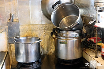 譚伯家中有六個大煲、三部攪拌機,以便製作核桃露及杏仁霜。(徐紹軒攝)