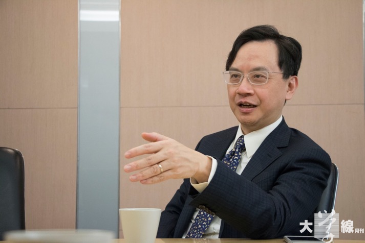 盧煜明西裝筆挺,只有低調的暗紋,領帶卻是舖滿長頸鹿和獅子等動物圖案,饒有趣味。(馮美斯攝)