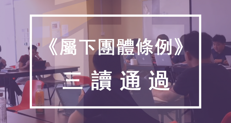 昨日(6月30日)代表會在第五次臨時會議第三次續會上,三讀通過《屬下團體條例草案》,將現有三個屬下團體相關事宜的章則(《屬下團體章則》、《屬下團體調查附則》及《屬下團體週年聯席會議附則》)合併、完善相關條文的定義及程序,並新增若干事項。條例將於2019年1月1日或之前,經公告後生效。