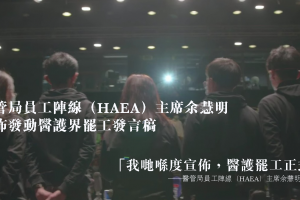 醫管局員工陣線(HAEA)主席余慧明宣佈發動醫護界罷工發言稿