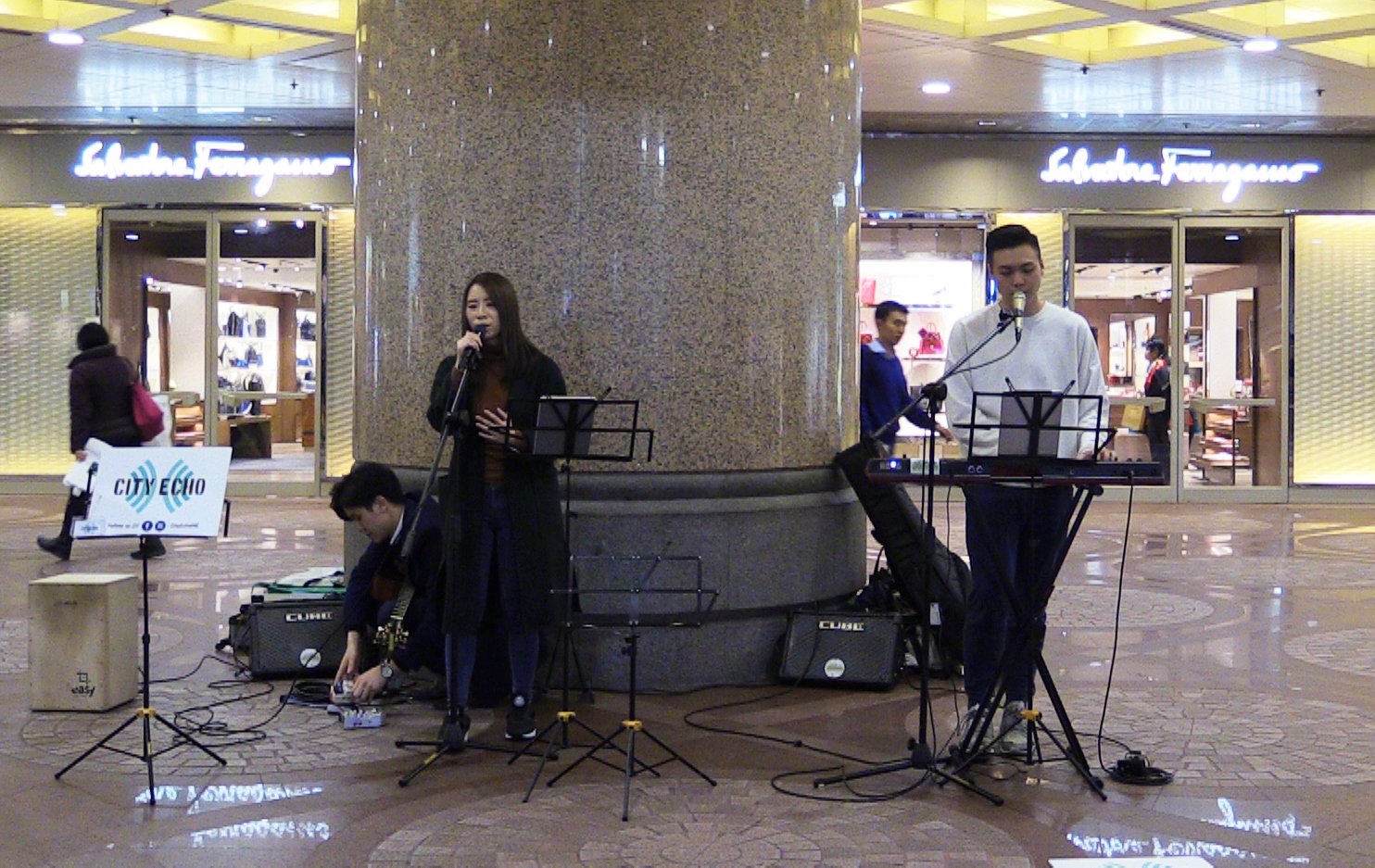 Every Friday night, a group of buskers perform outside Times Square in Causeway Bay. The regular gigs were initiated by a 27-year-old musician JL, who set up the platform, which he calls “City Echo”. JL has been performing on the streets for more than four years, and in this time he’s had to put up with constant hassles. .