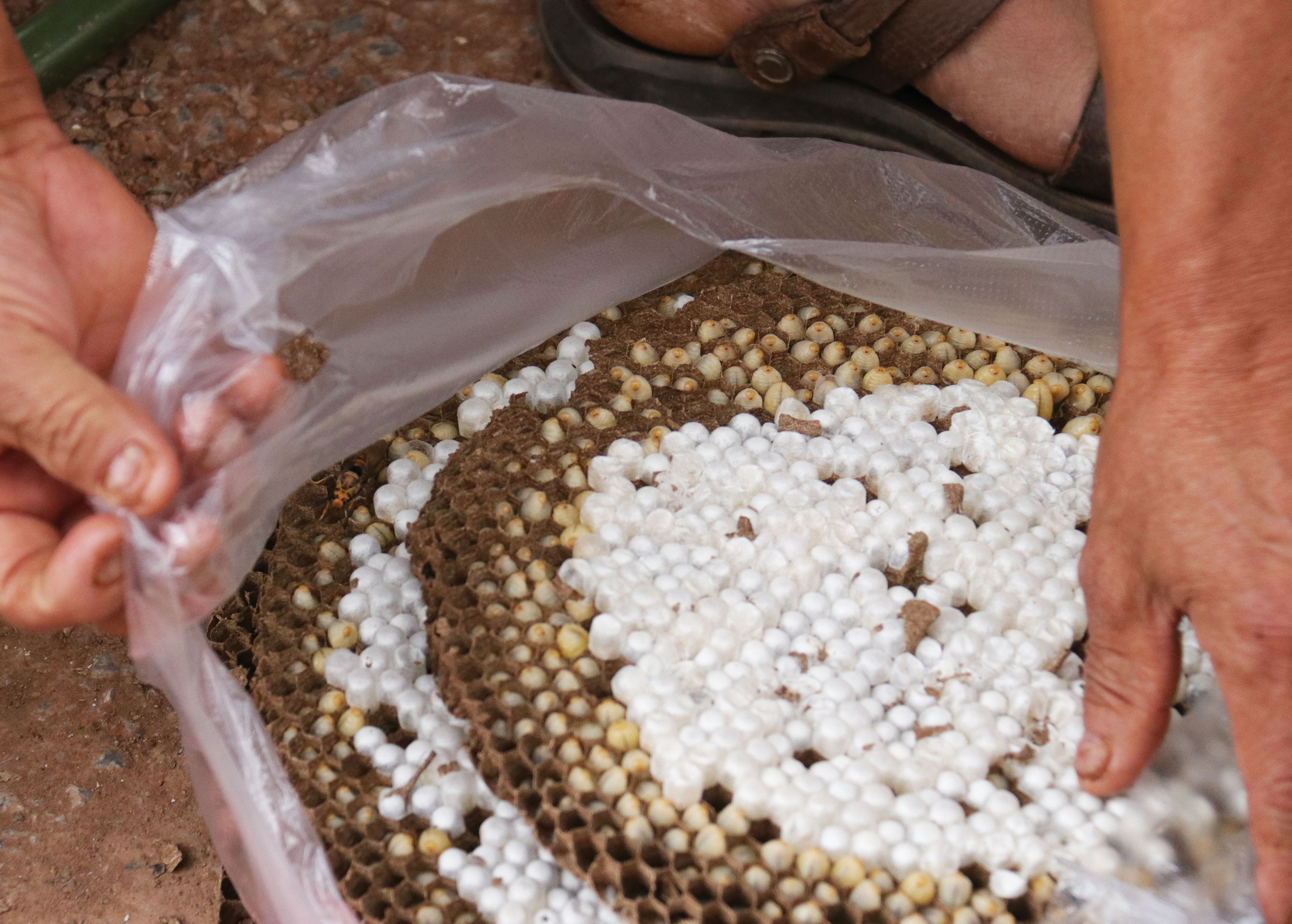 “Wild fungi and wasp pupas are only available before the Mid-Autumn Festival,” Li says. His wasp pupas are sold at RMB ¥180 (US $27) each kilogram, much cheaper than those in wet markets in the city.