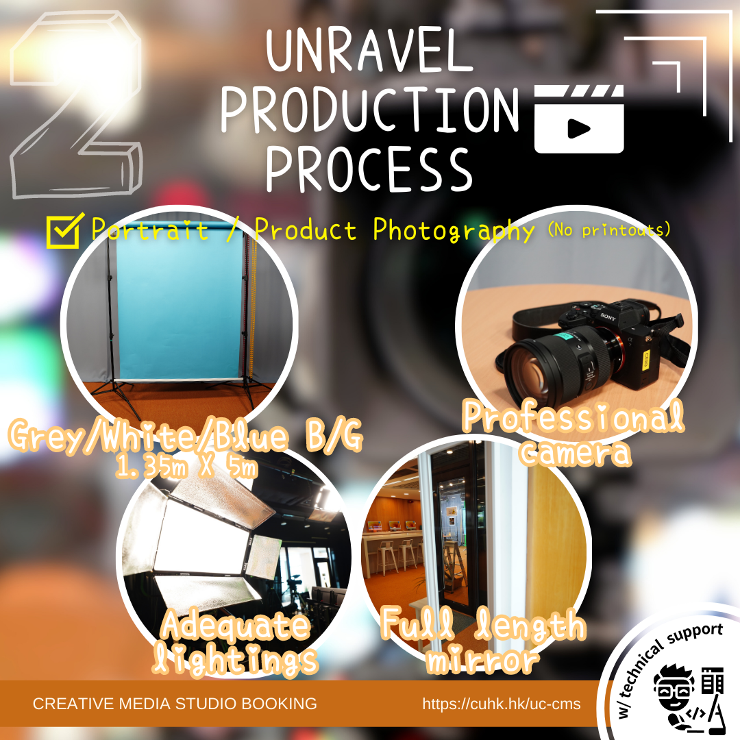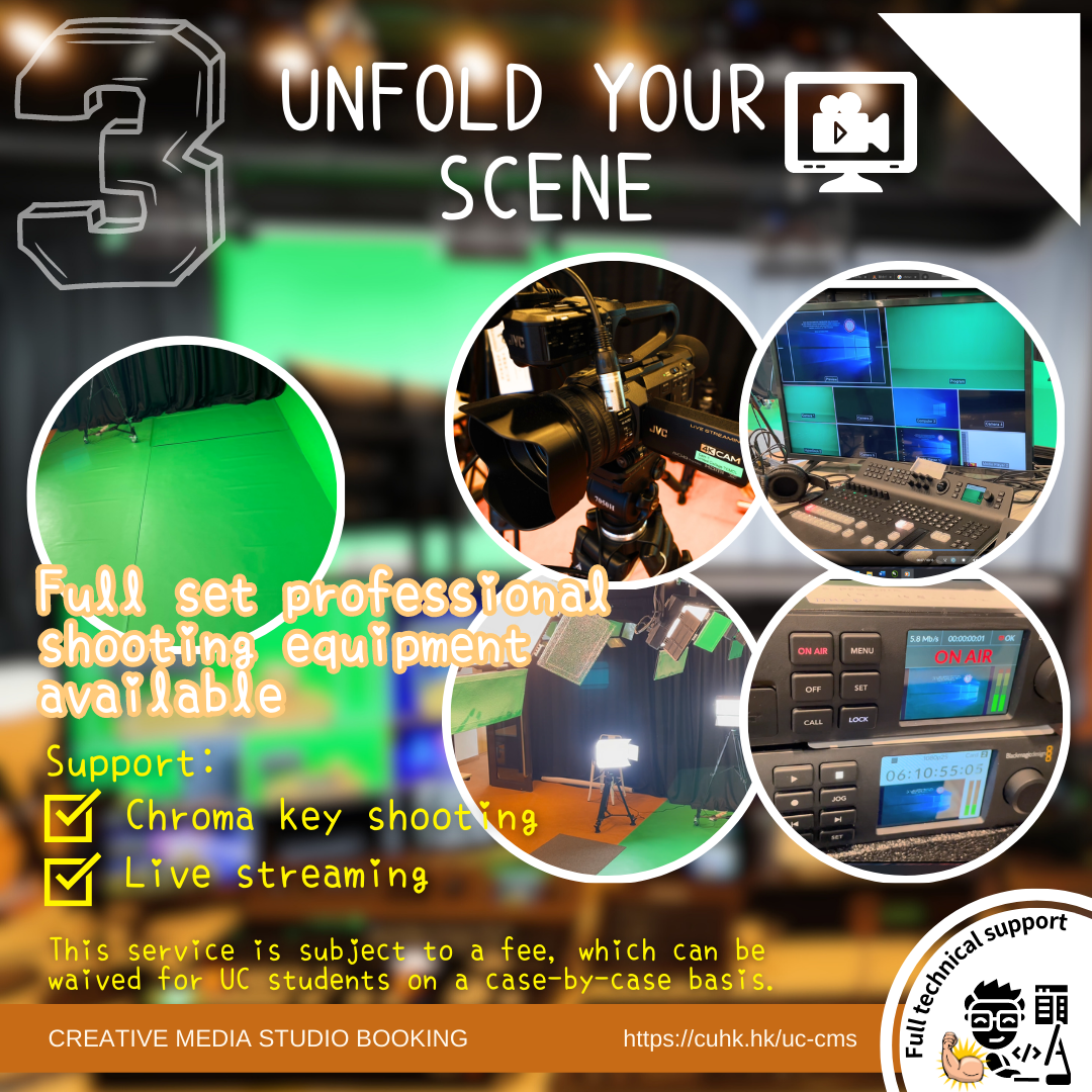 ➤ “Unfold Your Scene” package is subject to a fee of HKD1000/hour, which can be waived for UC students on a case-by-case basis.