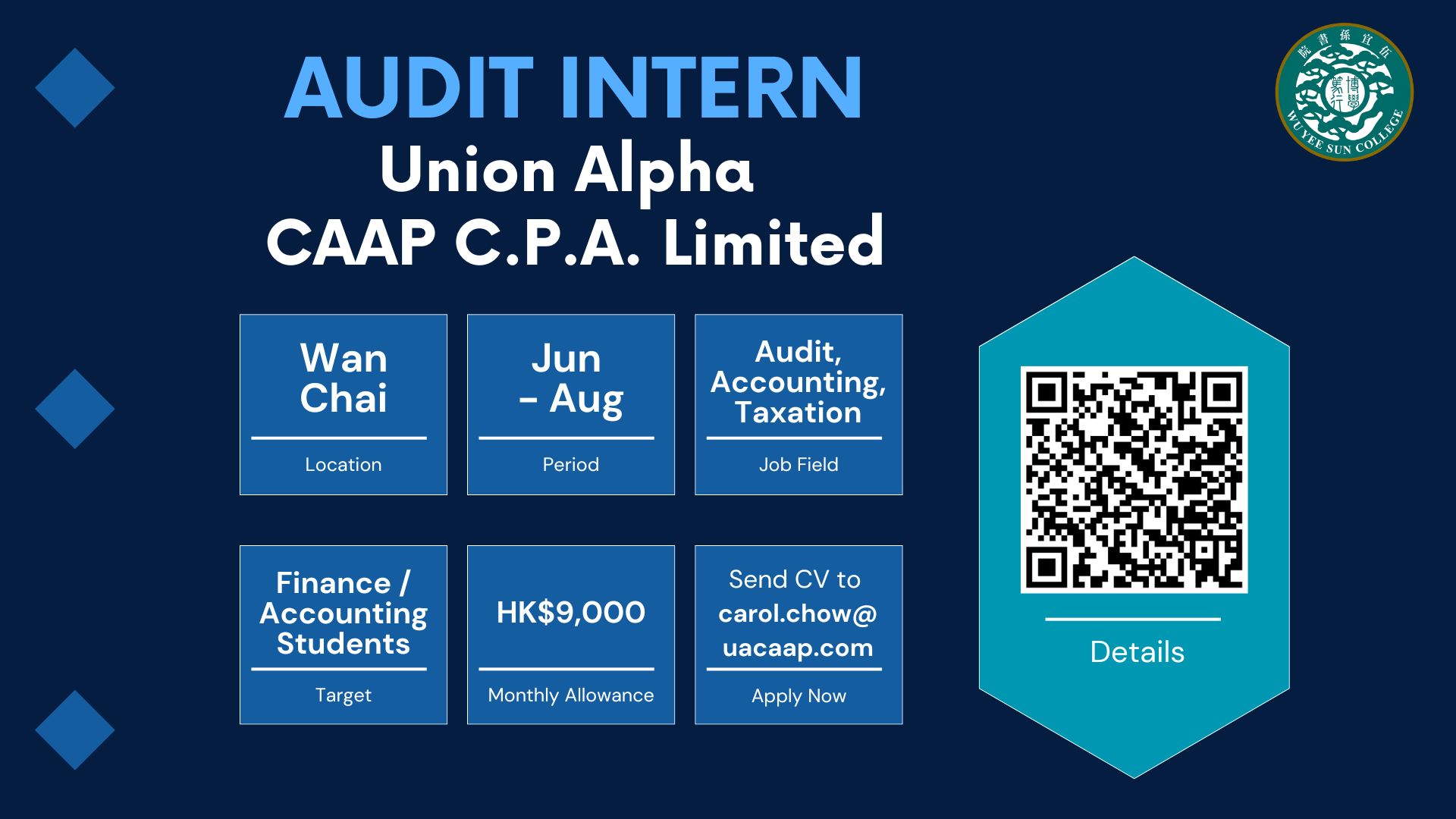 Union Alpha CAAP C.P.A. Limited is currently looking for an Audit Intern this Summer. Details are as follows:-
