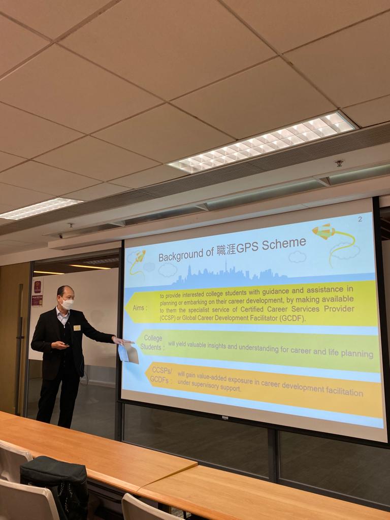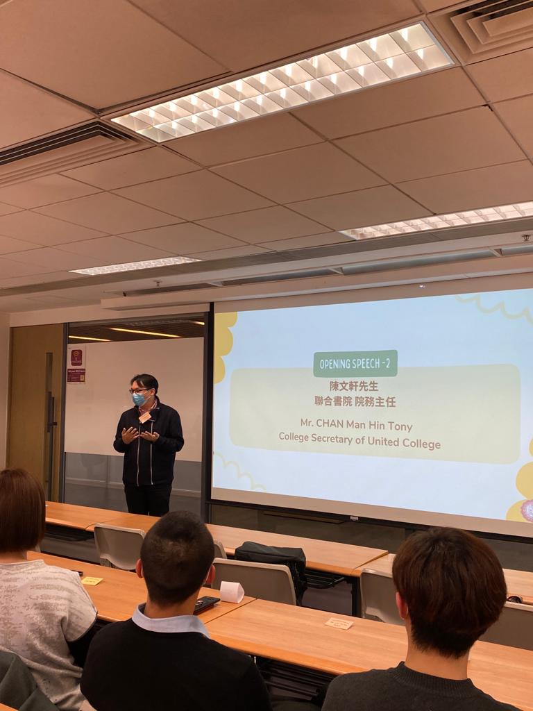 ▼香港中文大學專業進修學院課程總監 (專業及持續教育)梁萬如博士及院務主任陳文軒博士於開幕禮暨簡介會分享計劃的目標並鼓勵同學主動尋找去向。