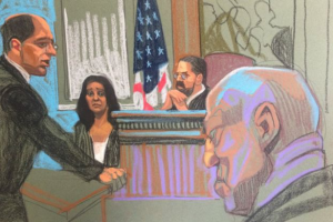 看 • 圖說故事 法庭裏的速繪與攝影 17年9月號, 47屆莊「螢」(17-18), 國際, 常刊 文:梁錫嵐 圖一 (Jeff Kandyba 的作品) 圖二 本年八月初,美國著名女歌手 Taylor Swift 控告前電台 DJ David Mueller...
