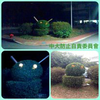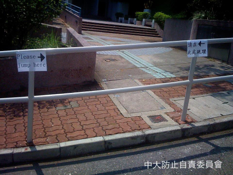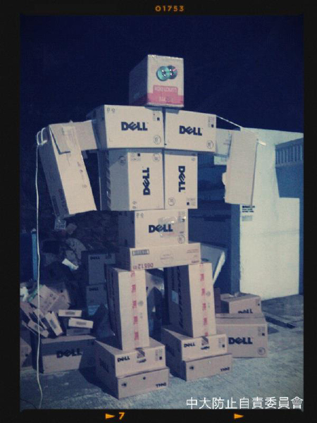 一次過滿足晒三個願望的中大防止自責委員會 文藝, 13年2月號, 42屆莊「鳴」(12-13) 文:偽平仁 圖:轉載自中大防止自責委員會的facebook專頁 「究竟佢地係邊個!?」最近身邊的朋友都對「中大防止自責委員會」(下簡稱「中自會」)在校園的所作所為嘖嘖稱奇;他們成立了短短一個多月,facebook專頁已突破二千個like,人氣直迫Cusis老母[1]。 中自會如幽靈般神秘地在中大活動,留下一件又件偉大的行為藝術作品,聲稱「旨在提供不同改善中大學術和藝術環境的措施,以提升中大的宇宙排名,讓畢業生首年每月就業薪金上升7位數字」,該會令沈校長感動得淚流滿面。而對於冇囝囝/囡囡人而毒自過末日聖誕新年三大關的人們,因GPA未能過三爆四而鬱鬱寡歡的人們,他們的出現,絕對是一碗熱辣辣的心靈雞湯。 我覺得他們的巴閉之處至少有三,像出奇蛋一次過滿足三個願望: 願望一:no money still talk 古語有云:「物盡其用,精盡人亡。」煮飯如是,做愛如是,搞藝術也如是。新亞校巴站附近垃圾站,常堆滿一大堆各尊貴department扔下的紙箱和發泡膠箱,中自會就曾利用廢棄電腦紙箱和CD-Roms砌成了一個身高兩三米、骨格精奇的機器人「I’m Not A Piece Of Rubbish, I’m A Robot」(見圖一),守護著孤苦無家的垃圾堆。乜錢都唔洗用咁滯,就已勁到連某中大畢業的香港著名文化人都忍不住在facebooks hare了它的照片。 另一中自會「不排除」做過的作品「寂寞的Android,挪威的窗台」(見圖二),以被棄掉的工程燈為眼,以長條形的紙盒為耳,不費吹灰之力,將新亞停車場垃圾房對面的一個球狀草叢化為android公仔,夜晚雙眼還會發光,連中大一些邊行邊用smartphone的smartass都要抬起頭駐足欣賞。兩件作品的物料皆揀得精準,想像力又澎湃,是要向歷史悠久的新亞藝術系下戰書,兼呼應今年新亞節的主題「青春」嗎? 願望二:優/美化校園 上年一開sem經過崇基,我就見到校方無端端在ELB和何添樓之間的馬路「體貼」地添置了欄杆,逼我多走一段路才可過馬路。這使一眾中大學生、教師、工友都忍不住學劉翔跨欄,反而更危險。中自會就順勢貼了兩張A4紙在欄杆上,寫著「請在此跳躍」和「Please Jump Here」(令交換生也看得明白,這才是體貼!),並把作品冠以《鐵達尼號》「You Jump, I Jump」之名,為這校方設計的交通黑點點多一點黑。(見圖三) (題外話:去年12月底,校方終於進行了拆掉欄杆的工程。唉,又一次浪費了公帑和我們的學費。) 中自會除了懂得與人文對話,也懂得與自然對話,把中大先烈的人文精神發揮得淋漓盡致。例如其作品「Just Two Apples, Fuck You」(見圖四),就在UC草地的一棵樹上掛上了兩個節日掛飾用的紅蘋果,蘋果隨風搖曳,搖曳生浪漫,浪漫生智慧。奈何如此美麗動人,又不會跌落黎擲死人的蘋果,卻在他們掛上去之後數天失蹤了;大樹是我們的,為何不讓我們為它掛上蘋果呢? 願望三:人間有情 中自會還會在NA can一面貼著「地面不平」的紙下面貼多一句「拔刀相助」;在Franklin用溫馨的「因住跣親」取代冰冷的「小心地滑」,還要把紙過了膠。中自會旗下的「校園生活攝影小組」在聖誕節拍下coffee con 38蚊的聖誕特餐,稱它為「『其實毒能一個更開心』聖誕豪華套餐」,主菜是「獨孤牛排配悲傷薯菜」,只有湯沒有甜品,充分represent何謂走甜的聖誕。 他們每件作品都緊貼中大人的生活脈搏,時而灰諧幽默,時而柔情似水,常與毒撚同呼同吸。 結語 有人一見到中大某角落有類似的行為藝術東西就歸功於他們,有人說他們有香港藝術家白雙全[2]的影子,有人甚至說他們是中大的Banksy[3],致力捧他們上神枱。 只是,他們在facebook如是說:「我們只是一群純情中大生。不喜勿like。切勿胡亂投射期望。」 他們可以只是兩三個人,也可以是數百個你我他與她。中大既然有一個防止自責委員會,即容得下數百個防止自毀/自私/自卑/自憐委員會。來,趁青春結伴行,艱險我奮進,拾起你的枱頭的膠紙和汽水樽,實現你一直沒有實現的願望。 [1]「Cusis老母」也是一個facebook專頁,出現於去年11月reg科大災難之時,現已有三千多個like。 [2]著名香港藝術家,畢業於中大藝術系,曾代表香港出席第53屆威尼斯雙年展,作品多被介定為觀念/行為藝術。 [3]匿名的英國街頭藝術家,在世界不同角落以塗鴉批判政權、戰爭和社會精英。 同場加映:獨家專訪中大防止自責委員會 1.這個委員會為何會成立? 我們也不知道,但是,如果要吹噓一個也是可以的,就是要鼓勵同學們自發擅自做改善校園的偉大功業。 為何以「防止自責」為名? 前朝黨員聚會時,突然有人說出這個名字。 有多少個成員?全都是中大學生嗎? 商業機密,無可奉告。 2.你們每一次upload作品照片,都會有artist name、title、medium等等視覺藝術作品專用的格式,facebook page的簡介也稱自己在做的事為「行為藝術活動」,你們為何那麼重視「藝術」? 識女仔。 你們希望中大出現多一些這種藝術嗎? 有觀音就有兵。 3.你們其中一些作品會被校方清除,例如烽火台的「I’m A Sad Robot With Six Packs and a Pet」和掛在樹上的「Just Two Apples, Fuck You」,其實你們介不介意它們被清除? 異常介意,校方應該成立資料館妥善archive好本會的作品,他朝升值億倍,從此中大就可以以本會為名成立獎學金,惠澤社群。 要放置大型的東西在百萬大道的範圍,就必須向校方申請,你們展出作品是否想挑戰校園公共空間的一些使用規則?要申請