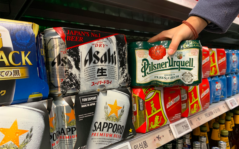 罷買戰線的主戰場之一,是南韓人幾乎視為日用品的啤酒。南韓作為日本啤酒最大出口國,在7月發起抵制行動,令日本啤酒一度絕跡南韓進口市場。