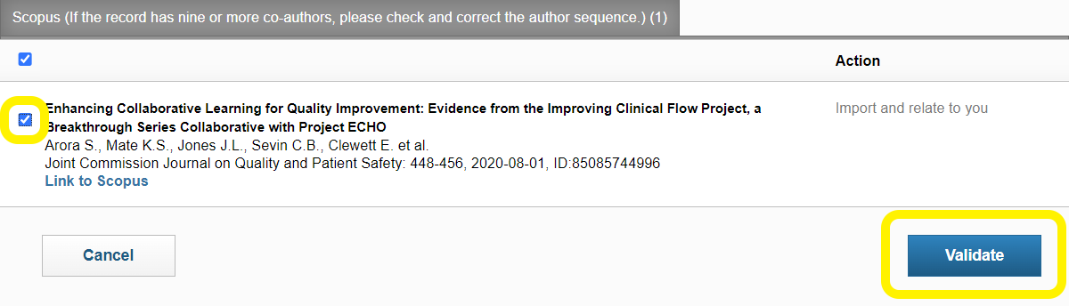 Note: You do not need to import all search results to your AIMS profile. You can only select the record of interest to import.