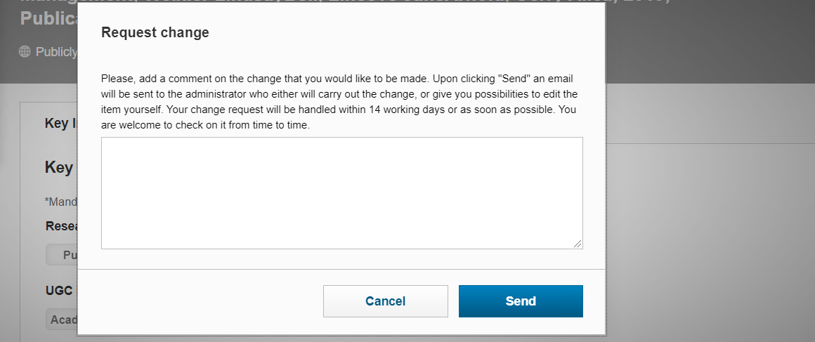 Your change requests will be handled as soon as possible. If the requests require further details, the Library will contact you by email.