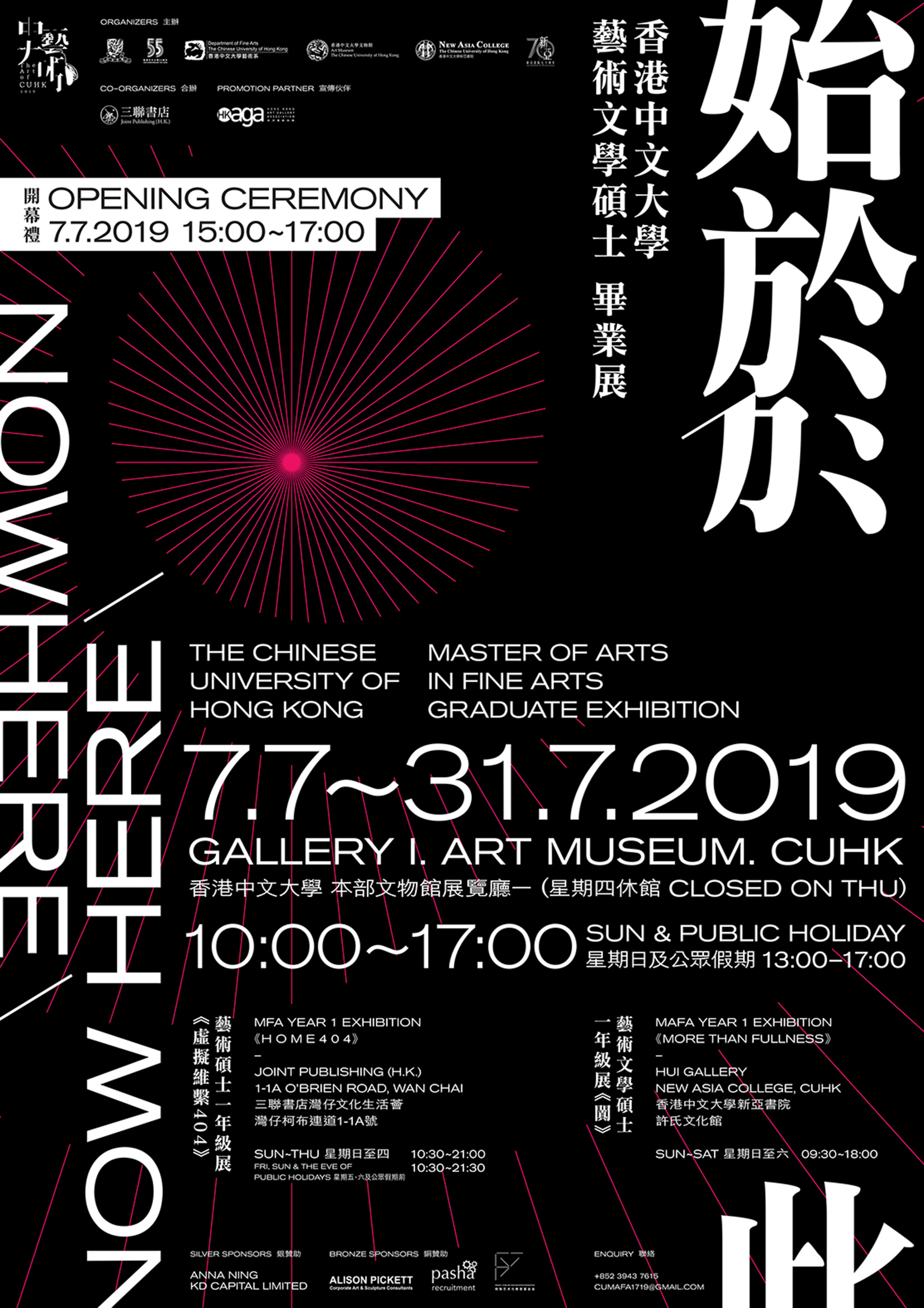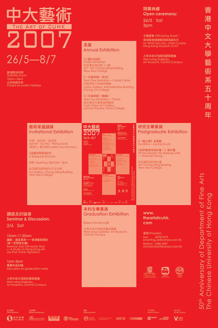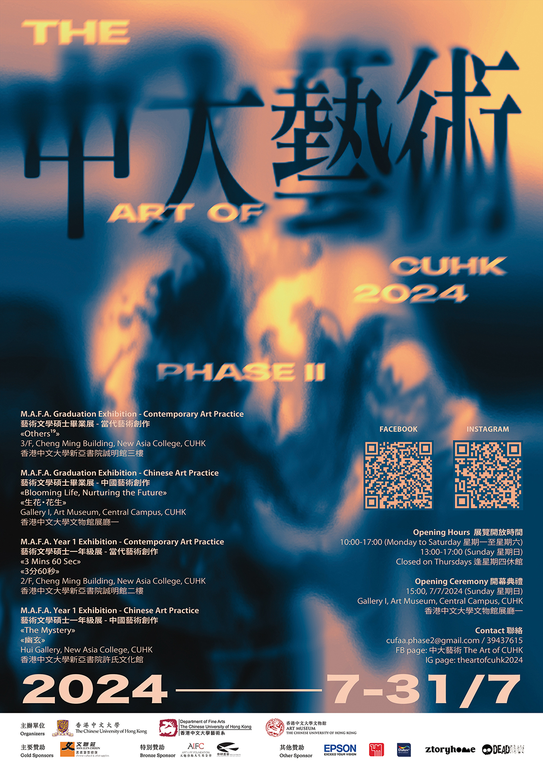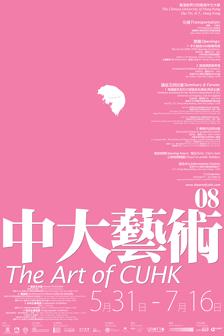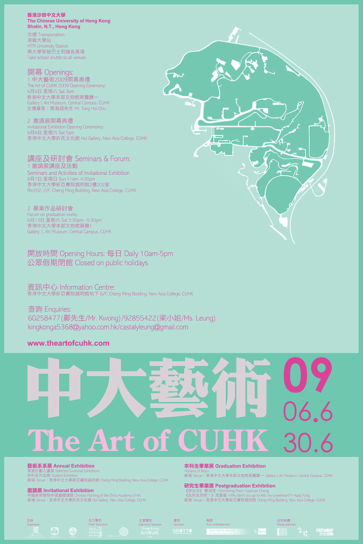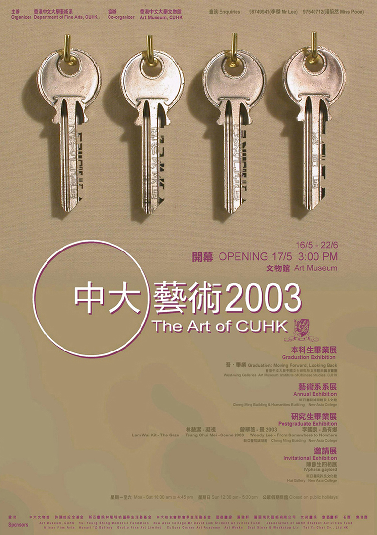“The Art of CUHK” offers successional exhibitions in two parts since 2013. Part I includes BA Graduation Exhibition, Master of Fine Arts Exhibition, Annual Exhibition & Invitational Exhibition which run from May to June; Part II includes Master of Arts in Fine Arts Graduation Exhibition scheduled for July. The venues of the exhibitions are at the Art Museum, Cheng Ming Building and the Hui Gallery, New Asia College, CUHK.