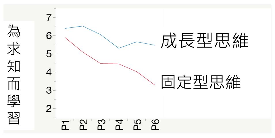 在香港,考試壓力按年級遽增,孩子從小一到小六拾級而上,為成績而讀書的壓力越來越重, 為求知而學習的動力卻日漸薄弱。死讀書, 讀死書, 讀書死成為了香港教育的悲歌,創造美滿人生成為了眾多孩子不可望亦不可求的奢侈品!雖然如此,當中大正向教育團隊把成長思維訓練帶進香港的學校,死讀書, 讀死書, 讀書死文化逐漸轉化成好讀書, 讀好書, 讀書好文化。掌握到成長思維的孩子,同樣是面對著按年遞增的測考壓力,為求知而學習的動力沒有衰退,但考試成績卻比同學優秀。在具挑戰性的學科上,擁有成長思維的學生,其優勢特別顯著。