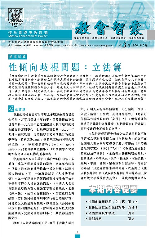 | | 第3期 性倾向歧视问题:立法篇/教会回应贫穷问题的策略 |