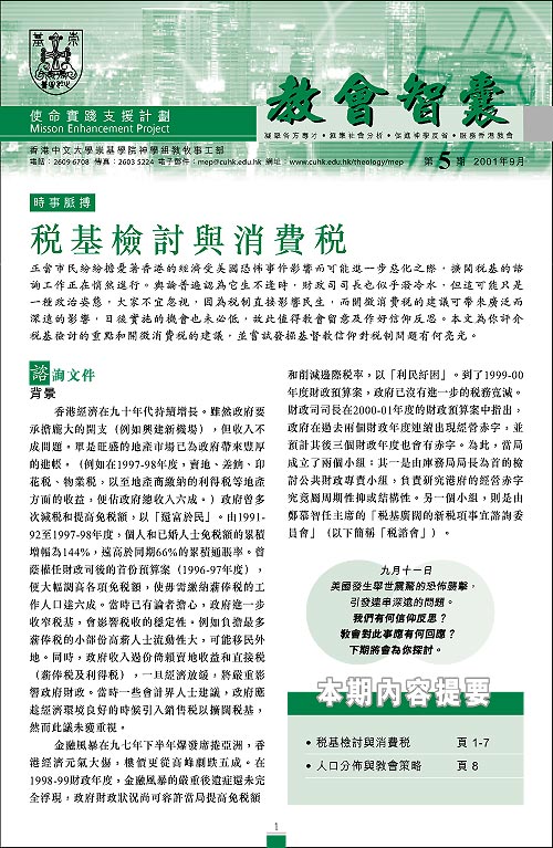 | | 第5期 税基检讨与消费税/人口分布与教会策略 |