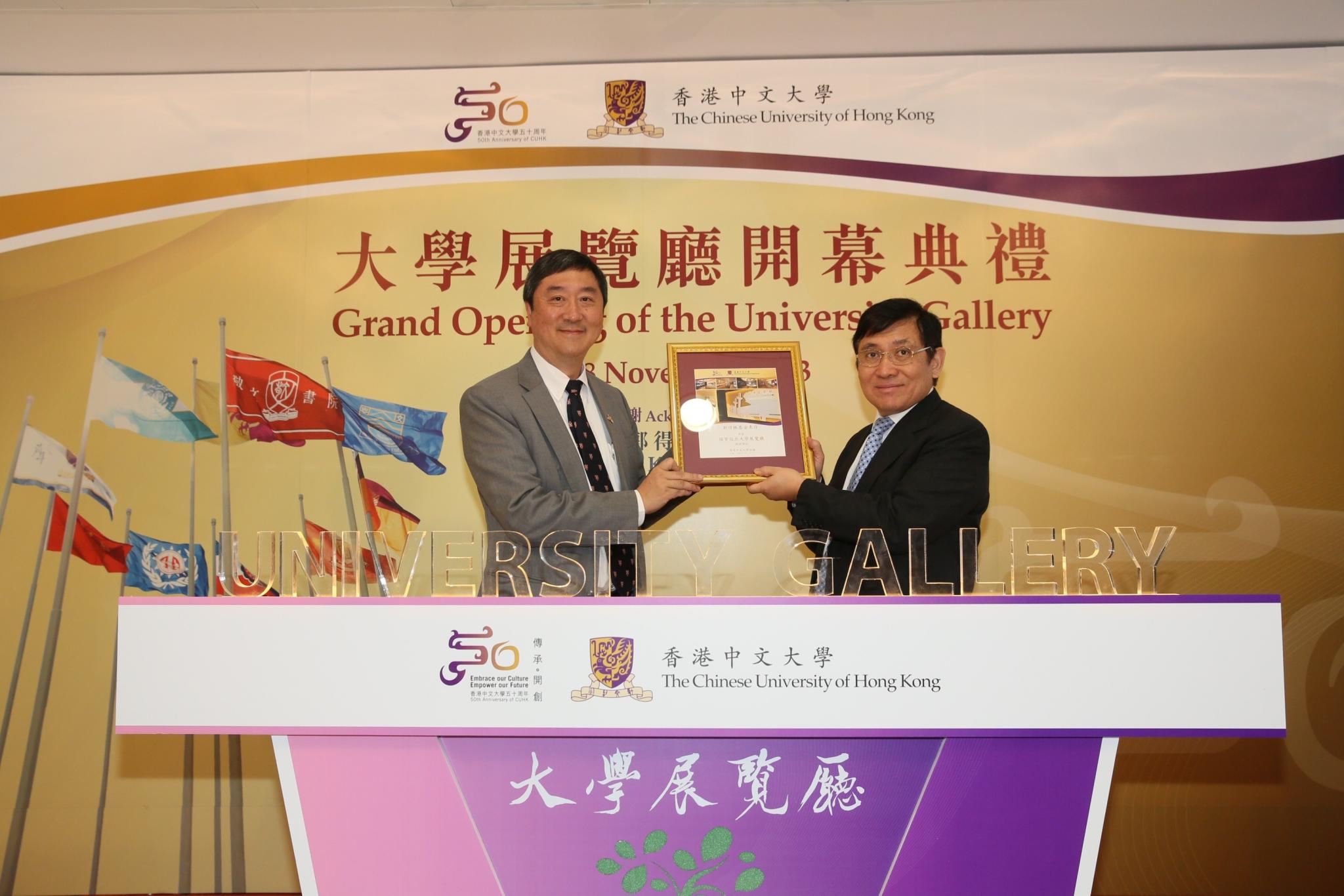 為誌中大金禧校慶而籌建的大學展覽廳於十一月二十八日隆重開幕,展出數百珍貴的歷史照片、文物及多媒體資源,讓公眾、師生及校友認識中大過去半世紀的發展歷程及成就,同時回顧香港社會幾十年間的快速發展。大學展覽廳由郭得勝基金贊助籌建,開幕典禮由郭得勝基金代表郭炳聯博士及中大校長沈祖堯教授主禮。