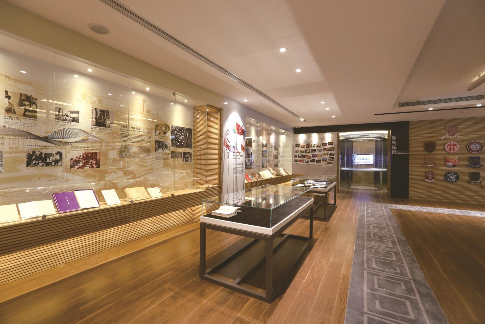 大學展覽廳設於大學圖書館正門入口處,共兩層,由七大展區劃分。展覽廳由半世紀里程回顧展開,設計有如時光迴廊,讓參觀者走過中大在不同年代的重要時刻。