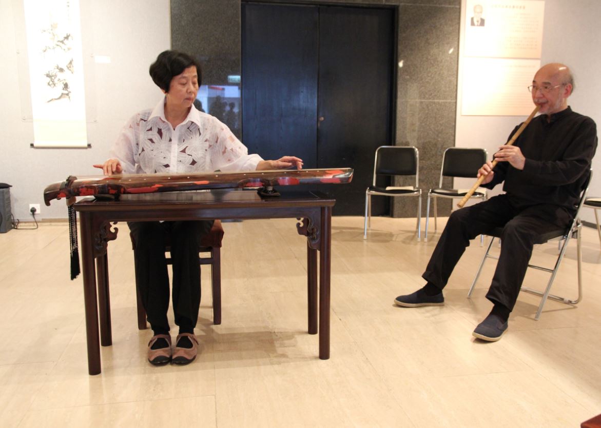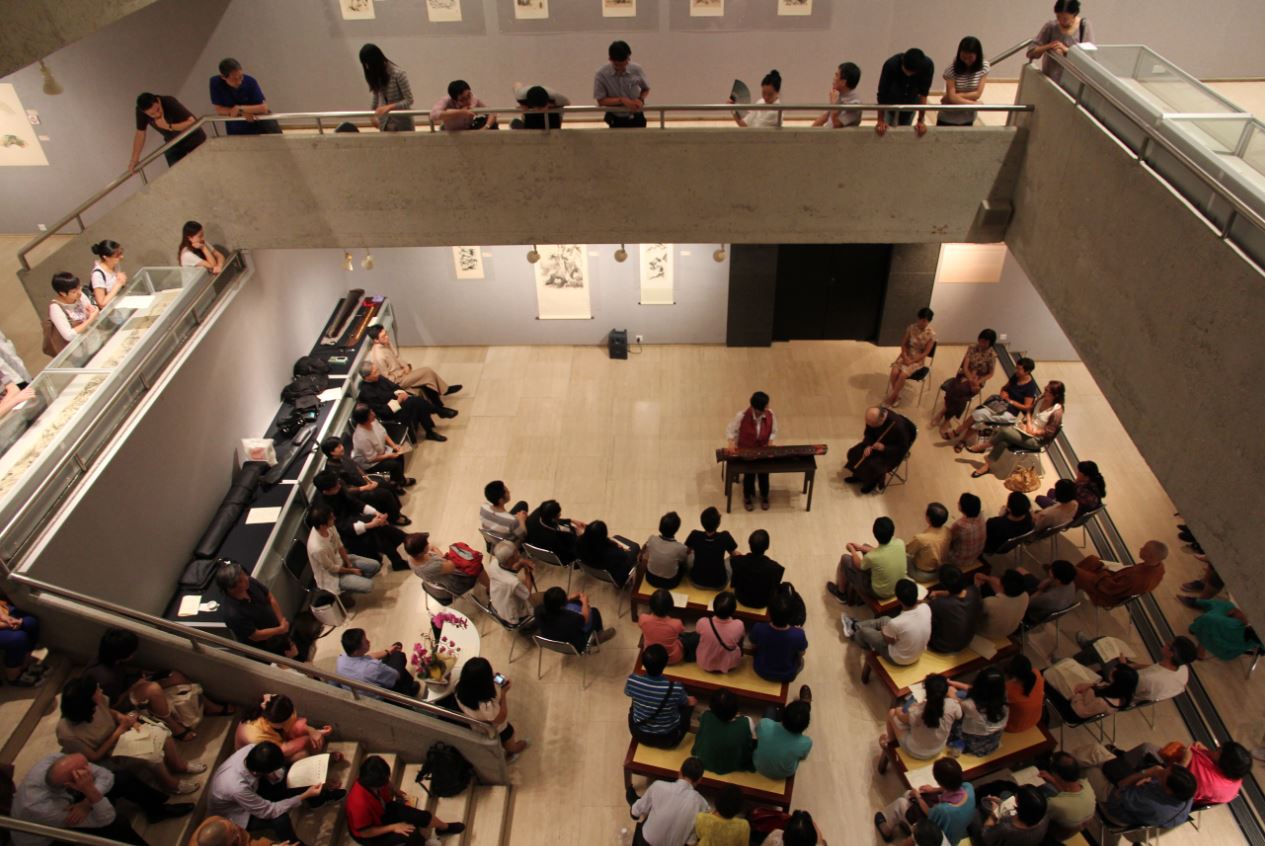 九月十三日,「中秋古琴雅集」於中國文化研究所文物館圓滿舉辦。活動吸引了二百逾人到場欣賞,展覽廳大堂座無虛席。賓客包括中大教職員、校友、學生,以及 琴人琴曲知音。校長沈祖堯教授、協理副校馮通教授、中研所所長李熾昌教授、文物館諮詢委員會主席莫華釗先生、收藏家不如閒室主人和夢蝶軒主人都是座上嘉 賓,與眾同樂,濟濟一堂。
