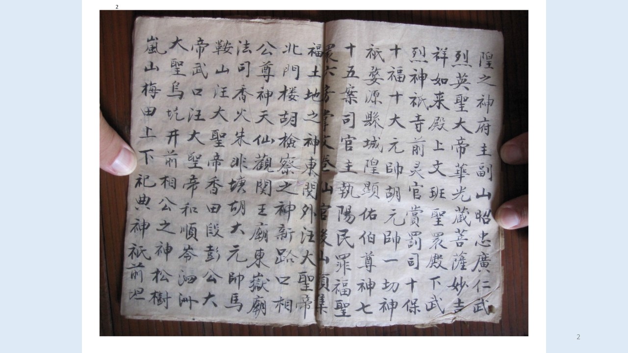 | 2 | 四嶽四天聖帝、五嶽五宮皇后、殿下文武伯(百)官 |