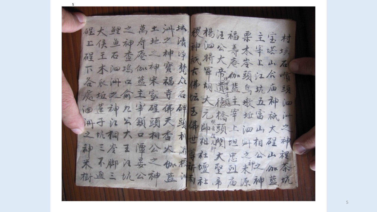 | 10 | 七十五案司官,主執陽民罪福聖眾,六房掌文卷仙官,後山頭集福土地之神 |