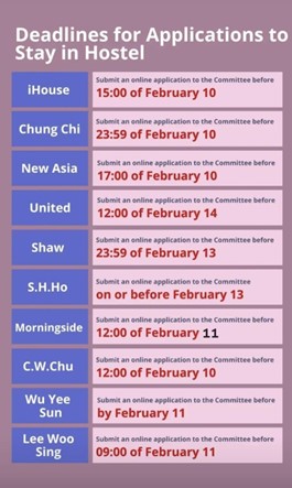 On February 8, 2022, CUHK announced that all residents, including international students, had to vacate their hostels the following weekend unless they had a compelling reason to stay. Students who wished to stay would have to fill out a form specifying their reasons.