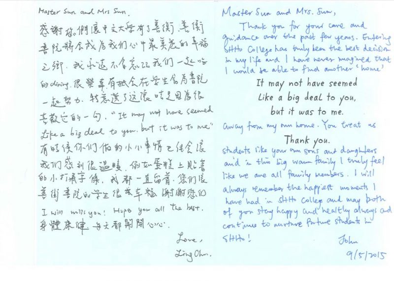 Exchanged from S.H. Ho College to Emmanuel College, The University of Cambridge