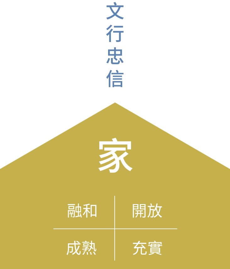 本院致力營造家的環境與氛圍,提供全宿共膳及全人關顧教育,讓同學從生活力行院訓「文行忠信」的精神。