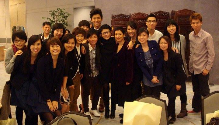 John Yip (with the tallest hair) at the 45th anniversary dinner of the Chinese University's School of Journalism and Communication.