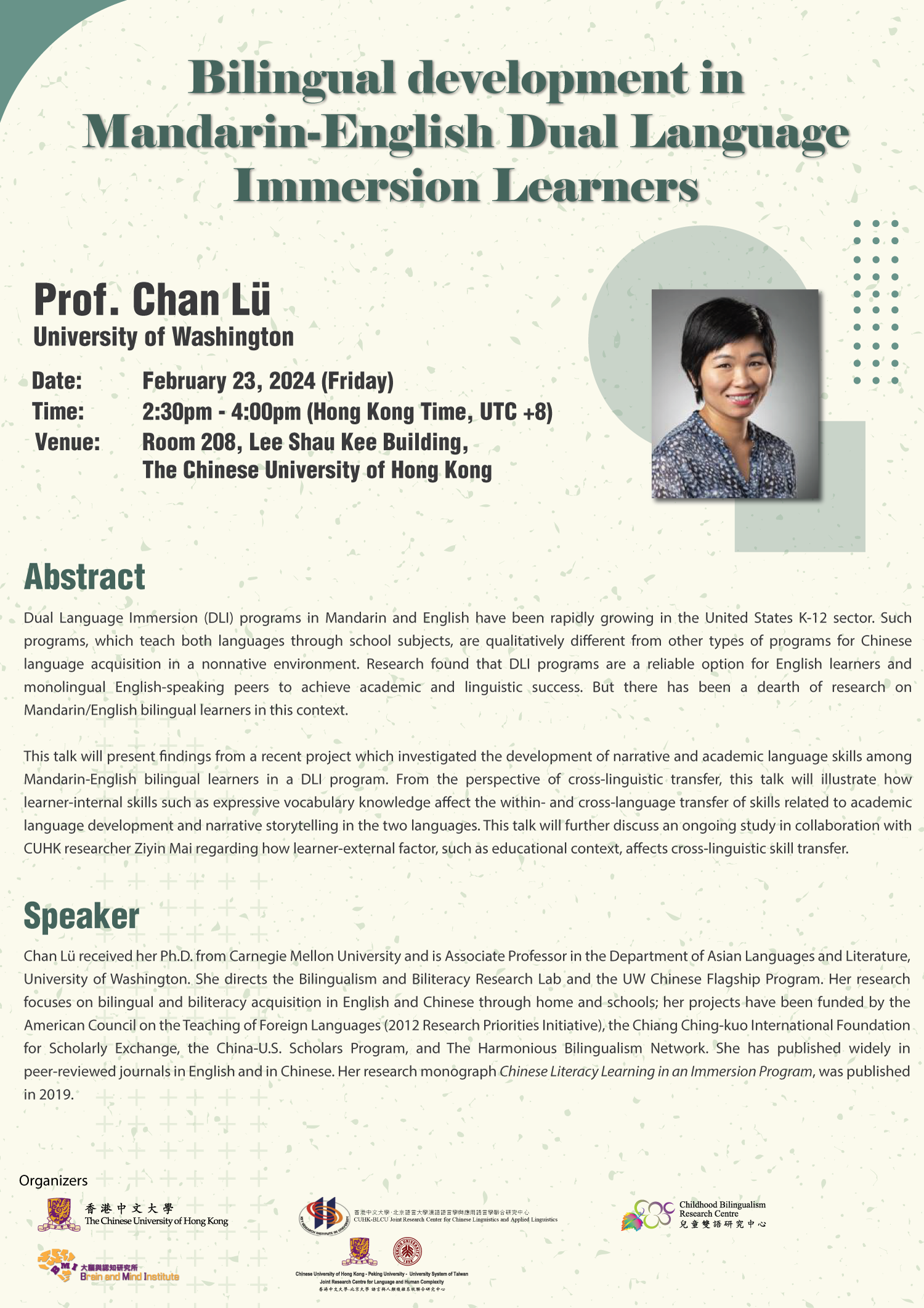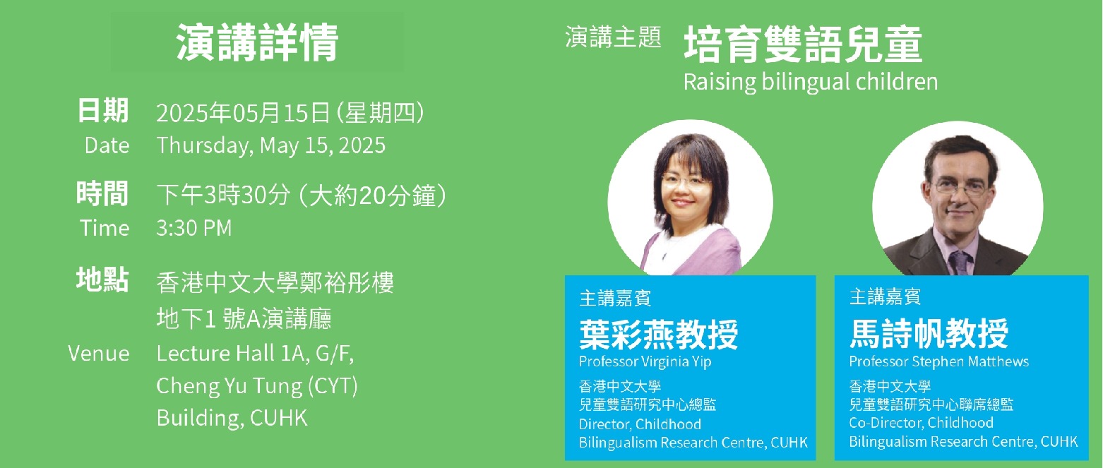 Speaker: Prof. Stephen Matthews (HKU), Co-Director, Childhood Bilingualism Research Centre (CUHK)