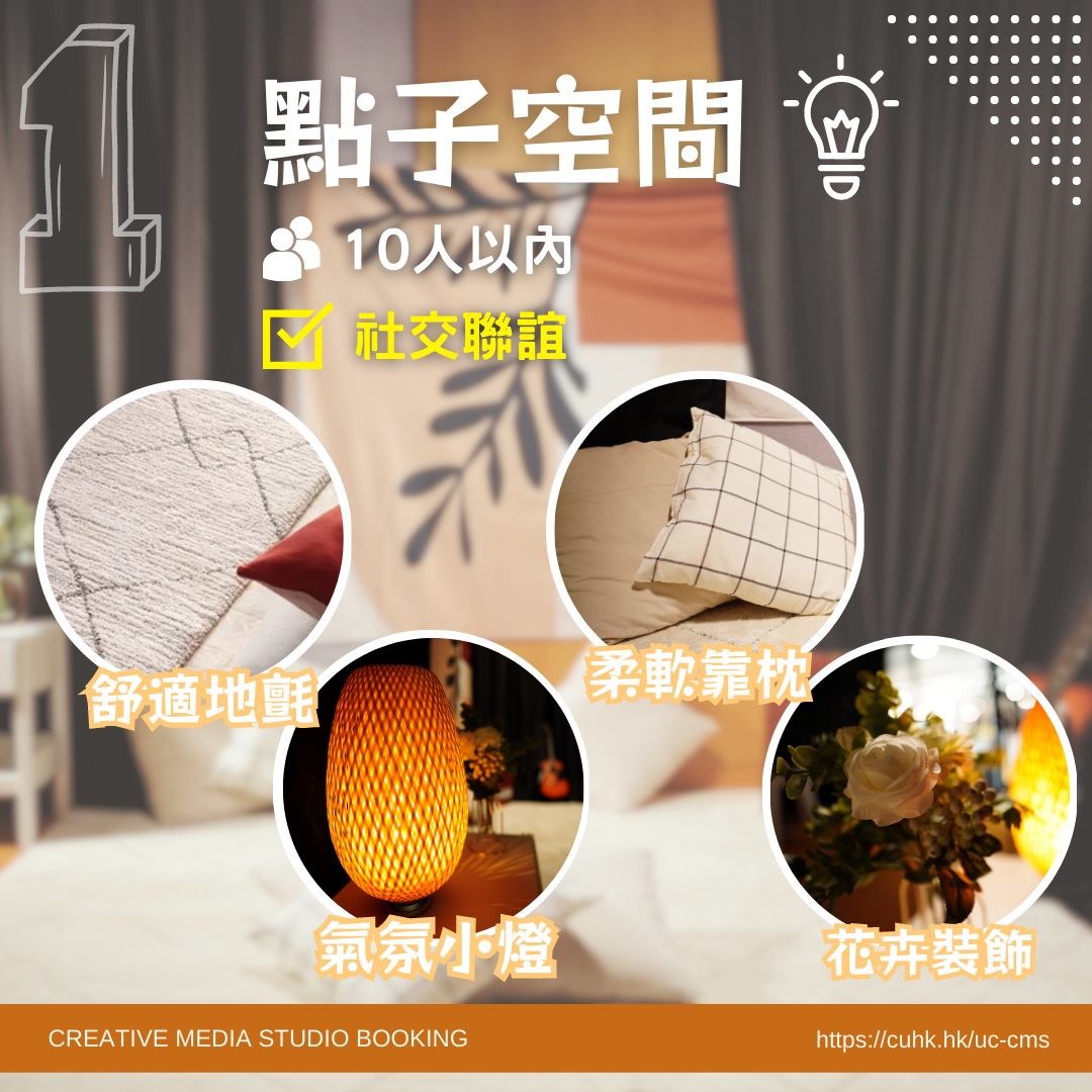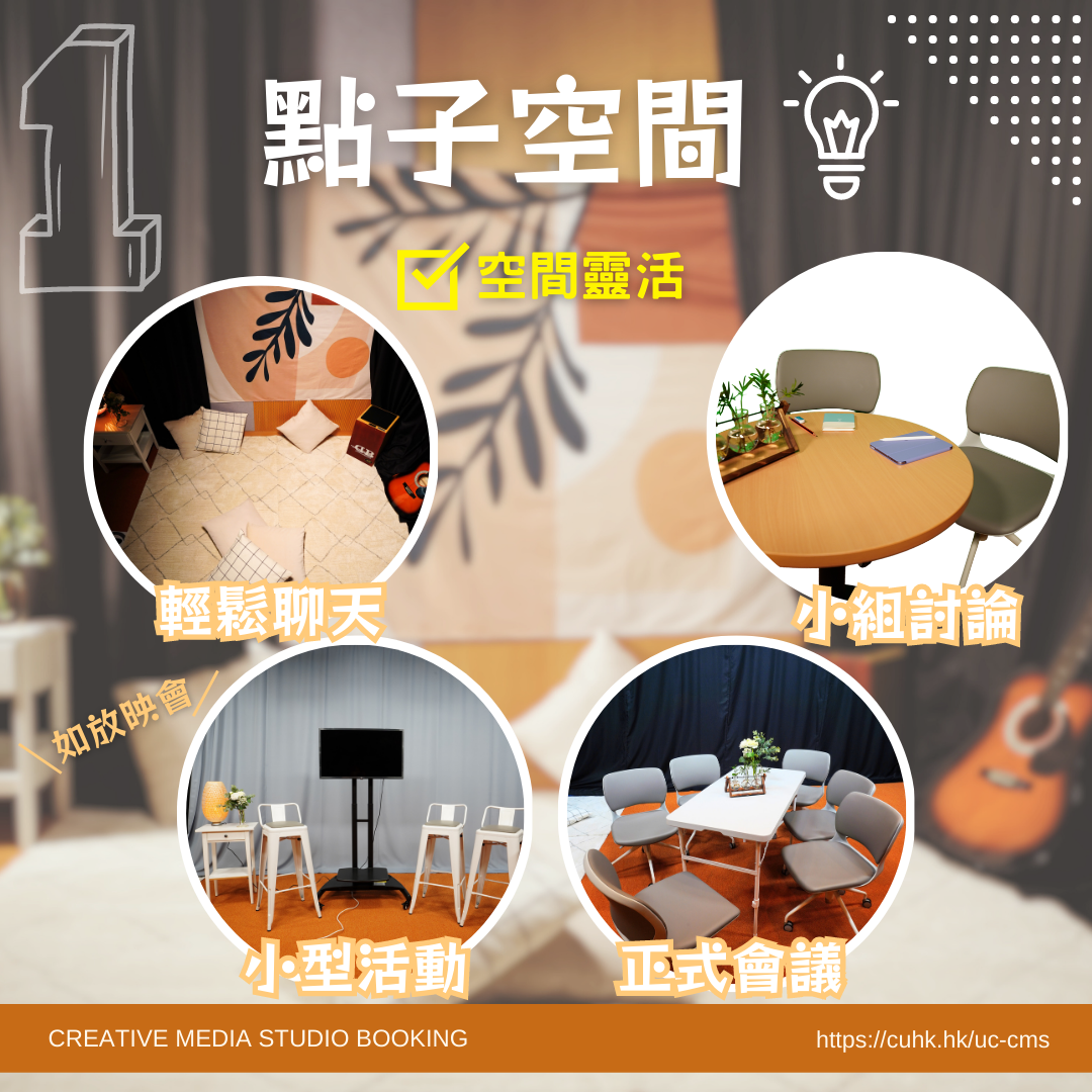 創作需要空間,有時好點子都是在閑聊中靈光乍現,創意多媒體製作間正可以提供一個舒適的空間讓同學「Chill住度橋」,輕鬆悠閒的氛圍更可供打卡拍照。